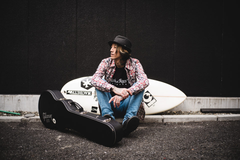 AKiLA 昔はもっと良いことを言おうみたいなのが強かったし、ちょっとした使命感もあってやってた。こんな俺が愛とか平和とか歌ってていいのかなと思って、それで歌えなくなっちゃったんだけど。今回やりたかったことは、引きこもってた自分みたいに、コンビニに行けないとか、歌を歌えないとか、状況は違えど、そういうヤツらをちょっと引き上げたいっていうイメージだった。幸せな人たちに聴いてもらって、さらに幸せになってもらおうっていう感覚はなくて。水中でもがいてる人を水面まで上げられればいいなぐらいに思って。あとは、日本語ってどうしても耳にロックオンしてしまうから。意外と耳にロックオンしないように言葉を選んだり、響きを大切にしたりしましたね。ずっとループして聴ける日本語のメロコアを目指してるんで。日本語だけど意外と残らないで、メロディだけ残って、言葉は聴いた人が欲しいものだけピックアップできるようにしたかった。メロコアというところにはこだわりましたね。というのも、最近のサーフ・ミュージックって、アコースティックは好きで俺もやるんだけど、メロコアの人たちもいなくなっちゃったし、そこにいることも大事なのかなと思って。今のサーフィンってヤバイから、映像にパンクが乗っかってたらもっとヤバイんじゃないかと思うし。そうすると俺がバンドを始めたみたいに、サーファーのバンドも増えると思うんです。